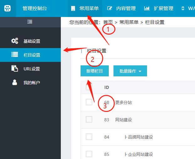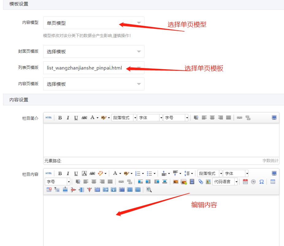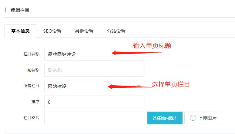 單頁管理在“欄目設置”處理