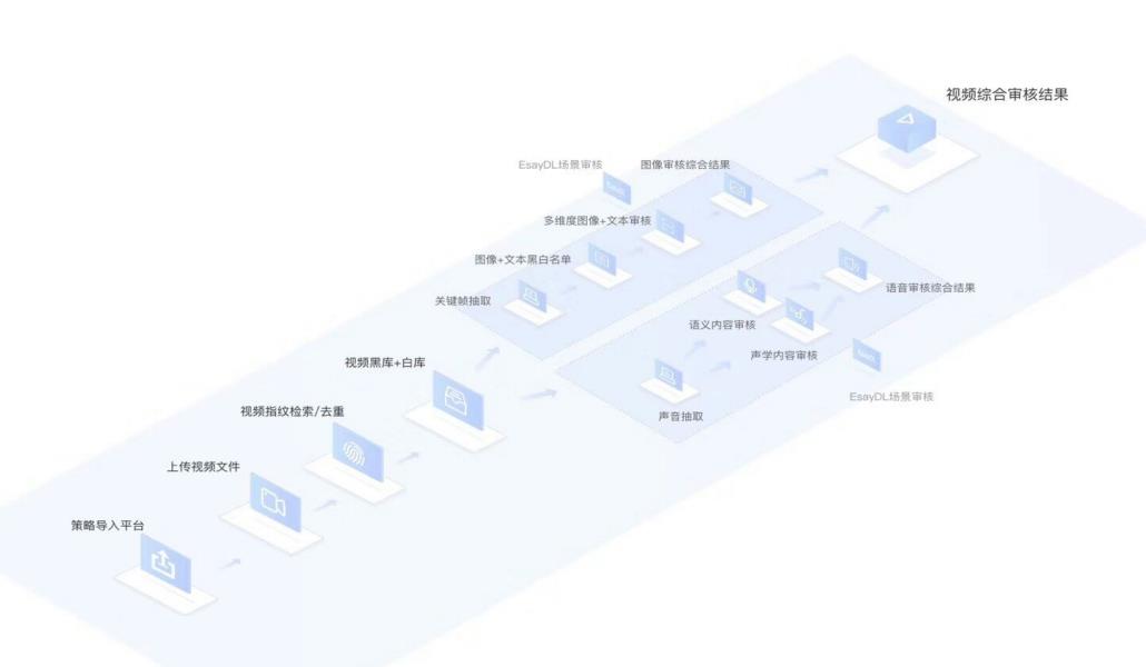 抖音審核采取機器與人工相結合的審核方法。每一部作品從上傳開始到熱門會遇到層層審核。此處僅貼出視頻審核算法,審核細節見附錄《讓你更懂抖音平臺的進審推薦邏輯》